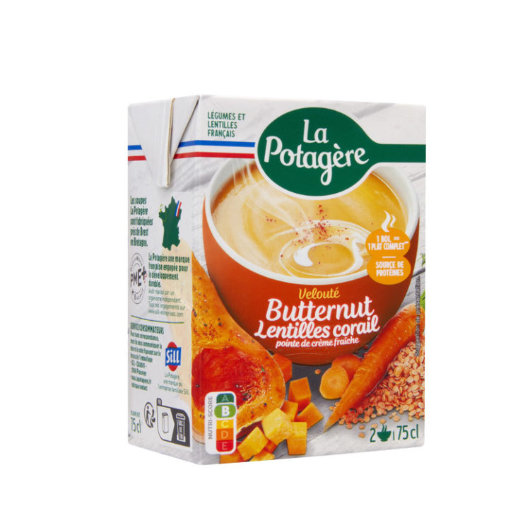 Velouté butternut, lentilles corail, pointe de crème fraîche 75cl